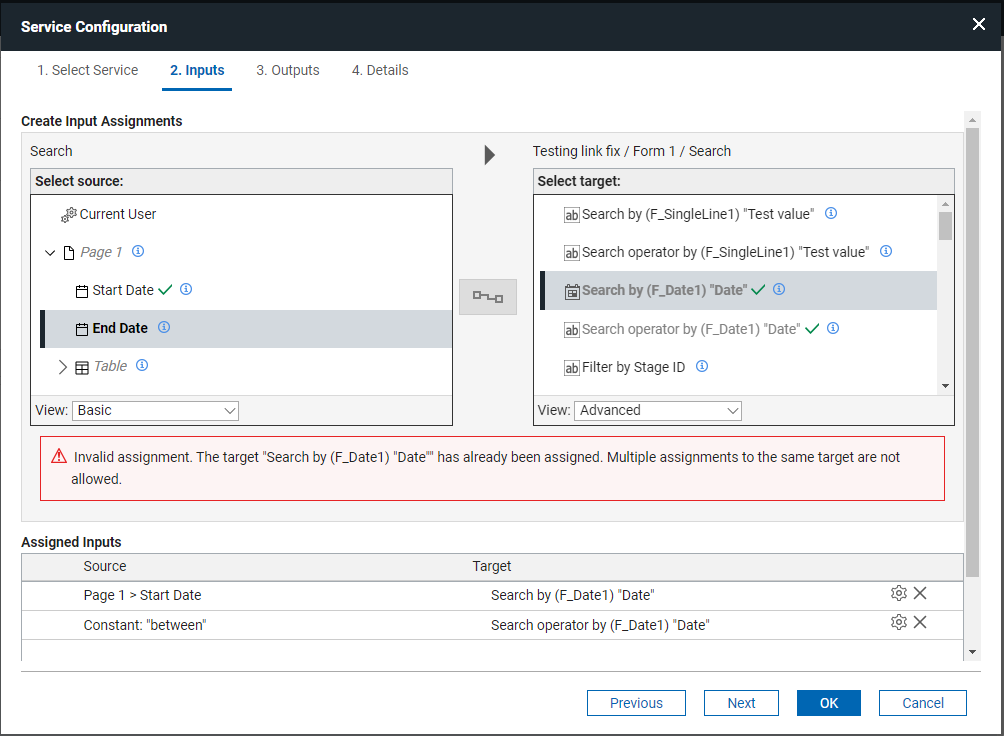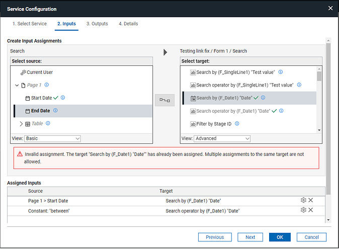 I was so excited to see the new "between" and "not_between" operators in the service configuration editor, but I'm having trouble using it. For example, I want to search for records where Date is between a specified start and end date, but I can't map both the start and end date to the Date field in the service (see attached image). I know I could create a service by URL that does this same thing, but it would be great to use the "out of the box" functionality.