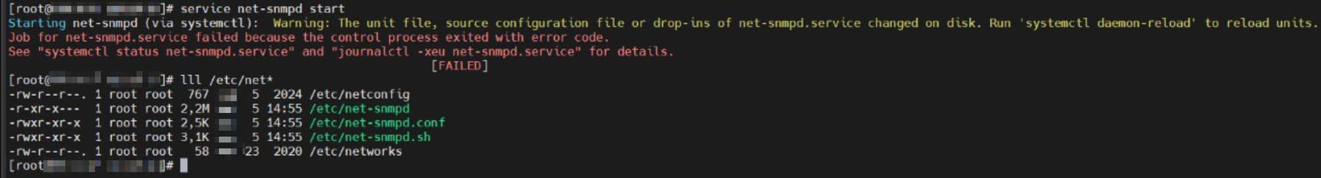 Failed to start LSB: NET-SNMPD Master Agent.