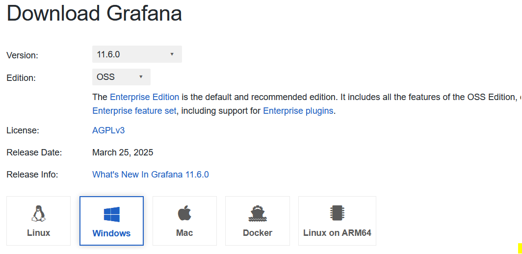 - For Grafana i downloaded the 11.6.0 OSS version.