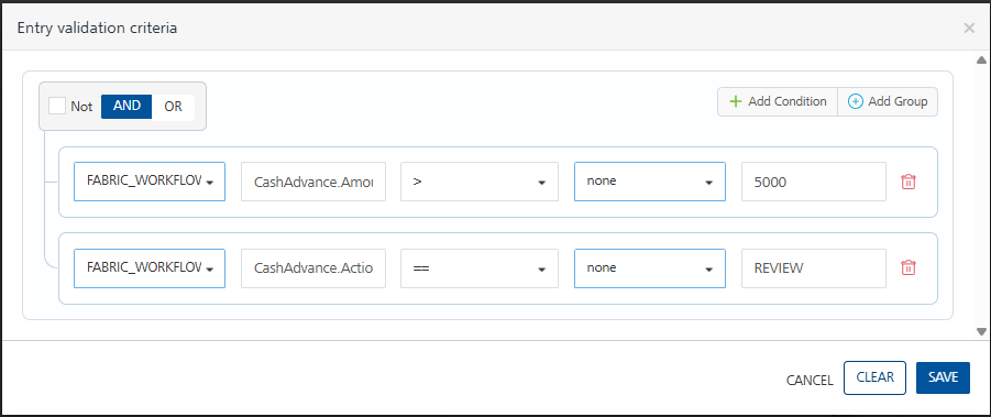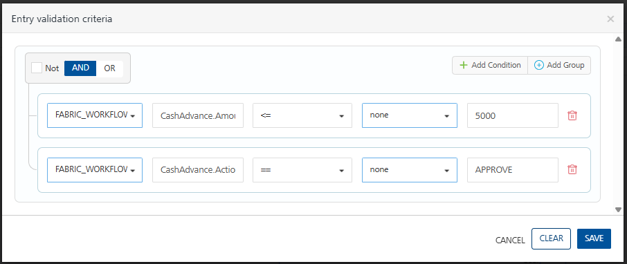 Entry validation Criteria: CashAdvance.Amount (as shown in Image 7)