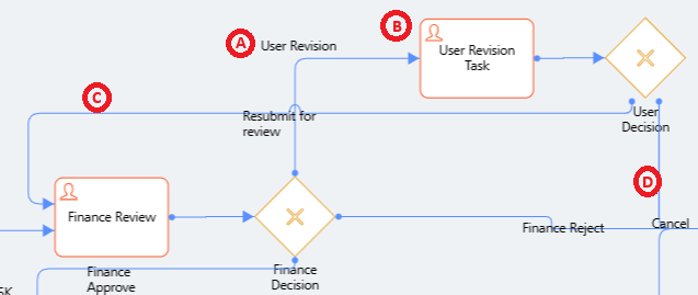 Add a new User Revision Task (B) step into the workflow if you have not done so and configure with the following: