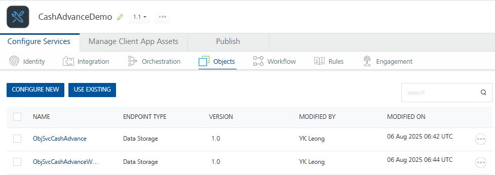 From the console, click on Object Services and Workflow Services to find the objects and workflow created for this project