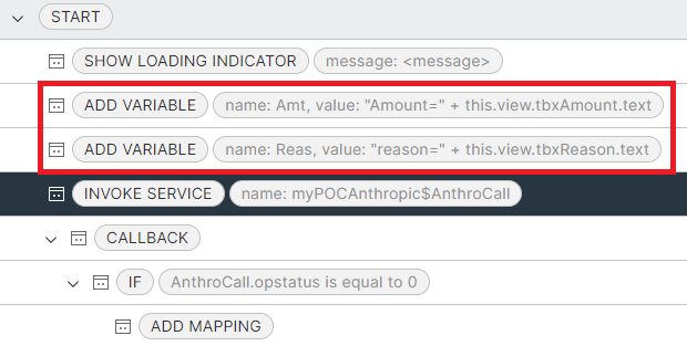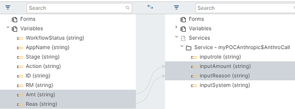 From the Iris form, set up the following configuration (Image 5) in the submit button. Note that the Amount and Reason is added into the global variables to be used in the Anthropic call.