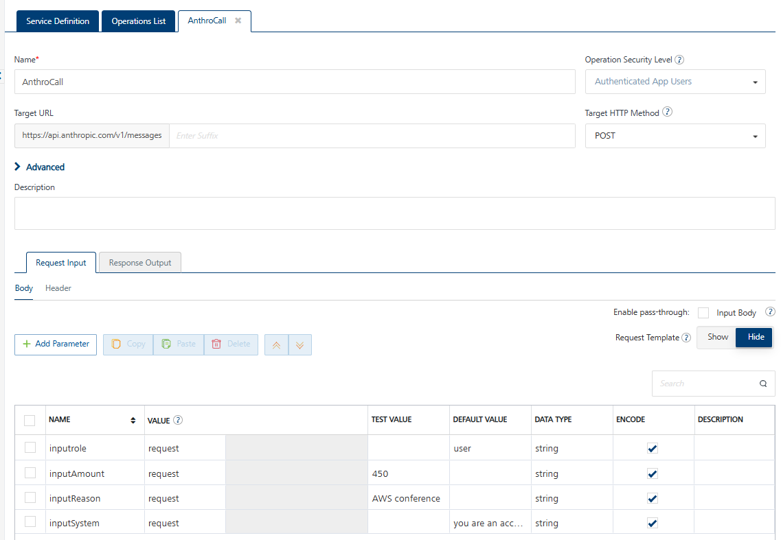 As part of the cash advance, the user will have to provide a reason for the application, but there can be various reasons that will have to be interpreted based on the requirements by the reviewer before approving, rejecting or requesting for a Finance review. So instead of having to set up various business rules to cover all the possible reasoning for approval and have someone manually determine the path to follow,let’s add an AI assistant to handle the initial decisioning to determine whether to Reject, Approve or Review based on the amount + reasoning. All we have to do is add an integration point using json as the Service Type (Image 3) in Foundry.