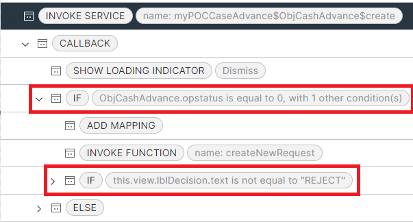 Two conditions (Image 9) are set to be met before the function createNewRequest can be triggered, and that is if the decision is not “Reject”. The reason for this condition is that workflow instances should only be triggered if the record for the business data is successfully created.