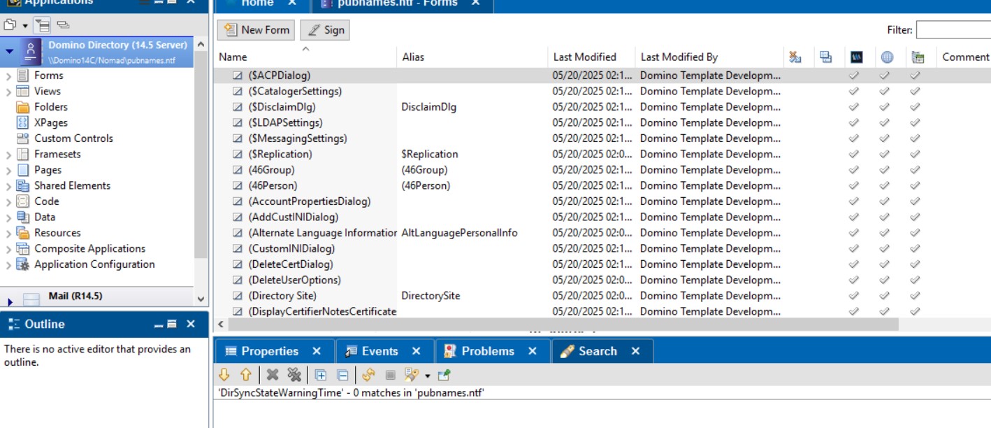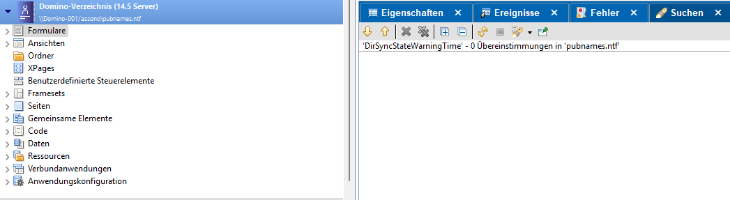 What surprises me is: In the error message, the item “DirSyncStateWarningTime” is mentioned that I could not find by searching both databases in Domino Designer. In particular, it is not in any of the forms. Where should the item come from then?