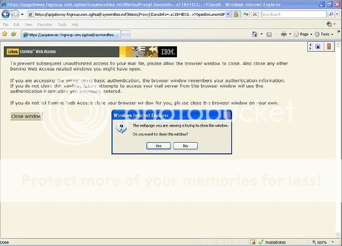Is there a way to remove the prompt as if the user click “yes”, the IE will close but the session will continue to be valid which is somehow a security loophole.