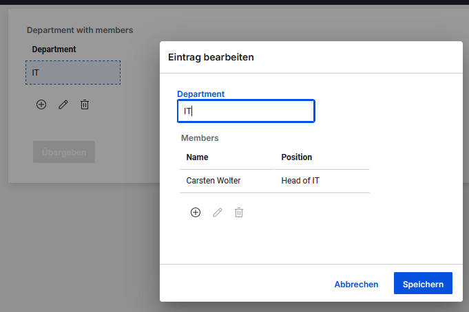 // using itemBO you can access everything added to the table "Department with members"