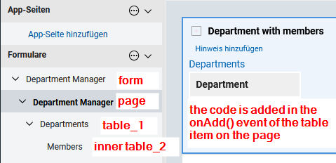 // onAdd() event Code for the "Department with members" element