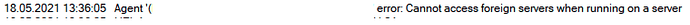 an Agent call by a scripted activity as run on server raises an error if the agent's server is not the server hosting the HEI.