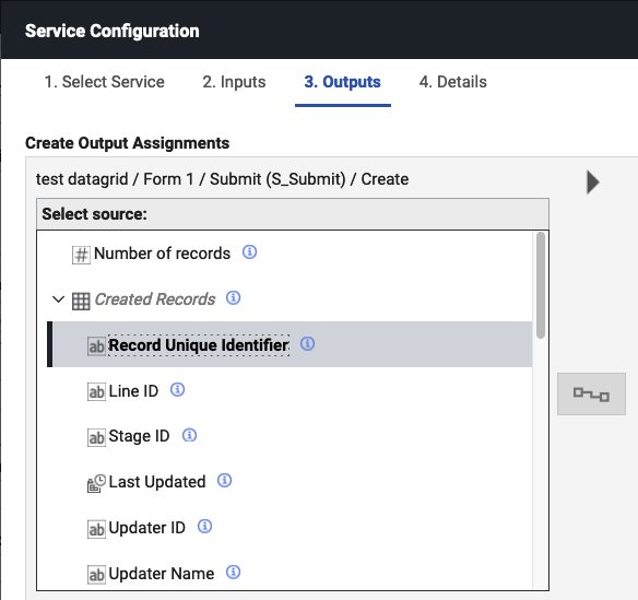 However, as you clearly illustrated, the RUI does appear in the output section and this can be used to populate a field elsewhere in the form once the service has completed.