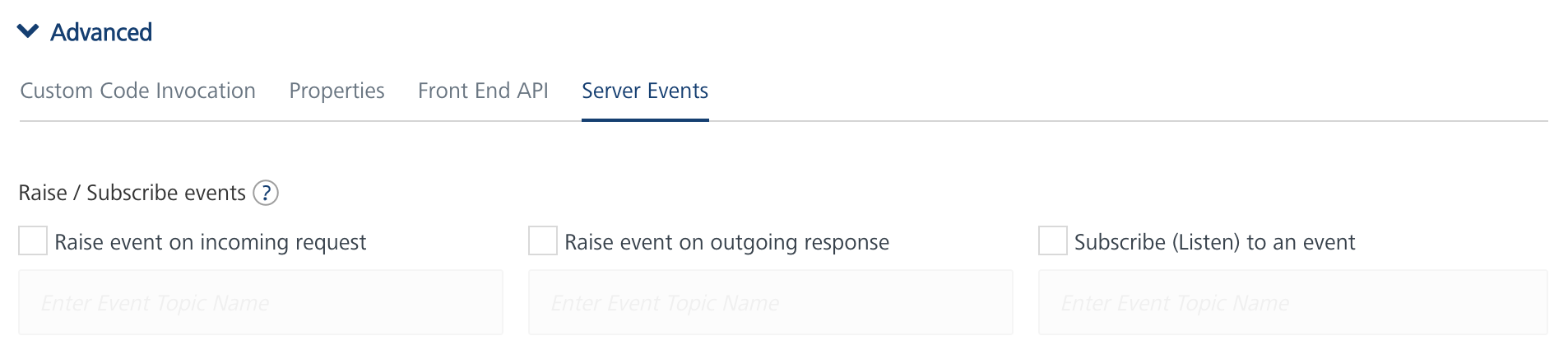 - Raise an Event based on the criteria suitable to your requirements, from Server Events tab of the Operation (as shown below).