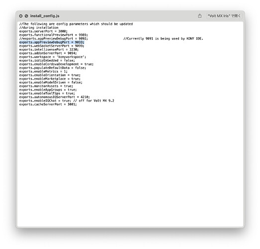 -> Open the install_config.js here you need to change the port number "exports.appPreviewDebugPort = 9033;"