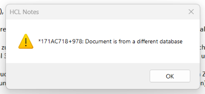 A user regularly receives the message “Document is from a different database” when marking an email for follow up. I have tried to solve this with fixup, compact and updall, however it regularly reoccurs.