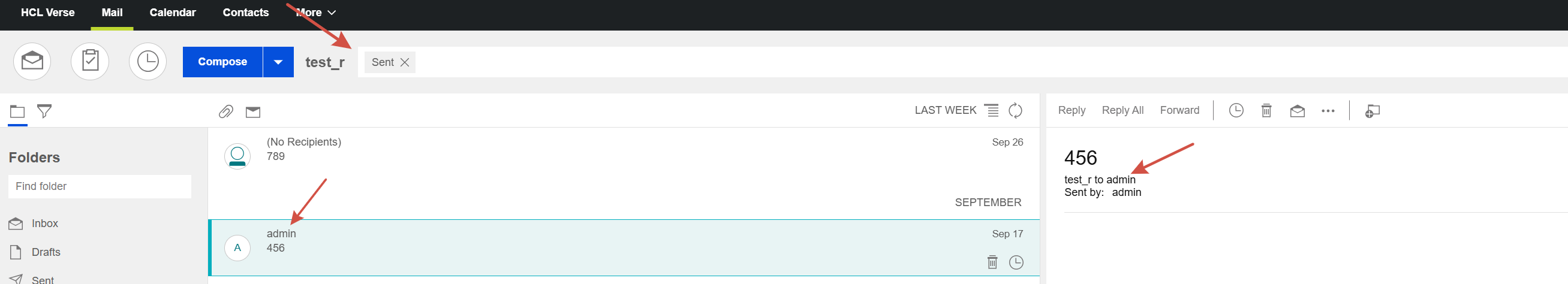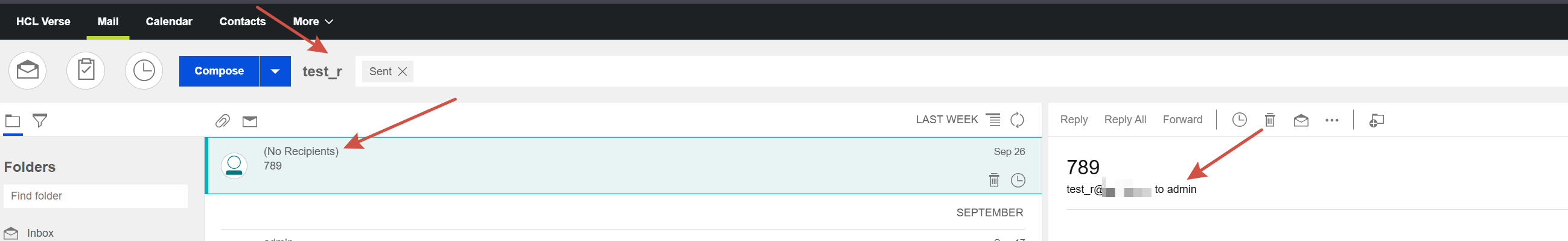 If the Mail-in database is set to: Automatically use internet address of Mail-in database as sender, then in Verse 3.2.5, recipients are not displayed in Sent items: