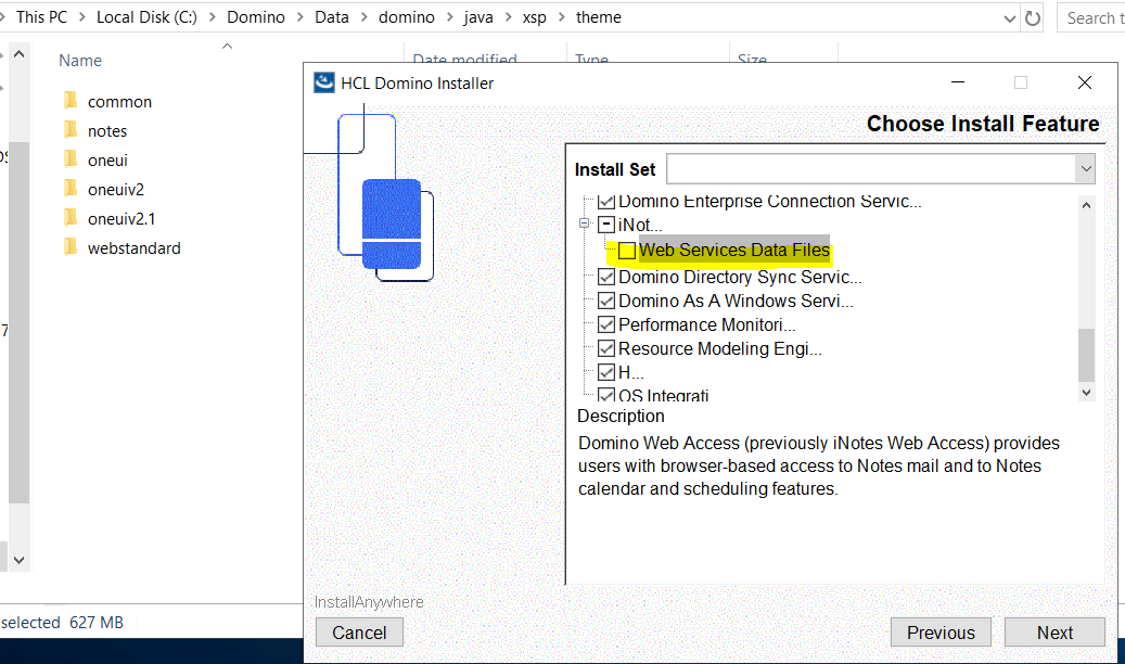 If you don't select the iNotes/Web Services Data Files you will not get the Theme directory. This, in my opinion, is wrong. The Theme directory needs to be installed with XPages.