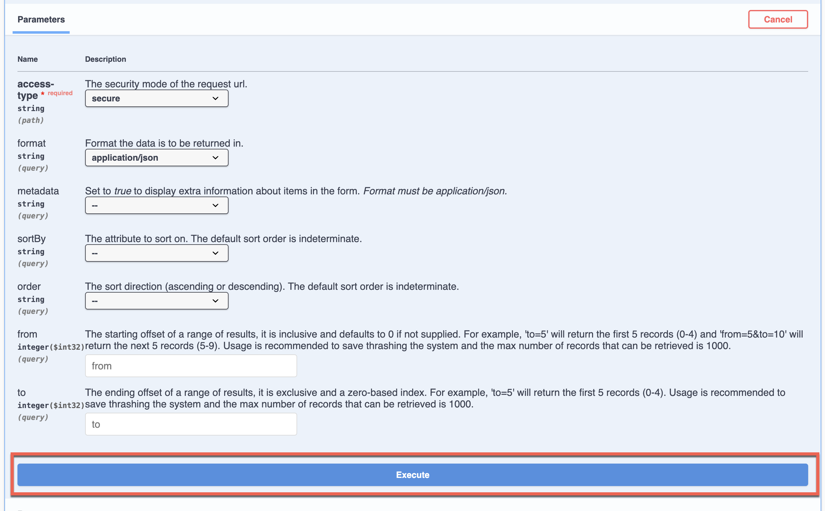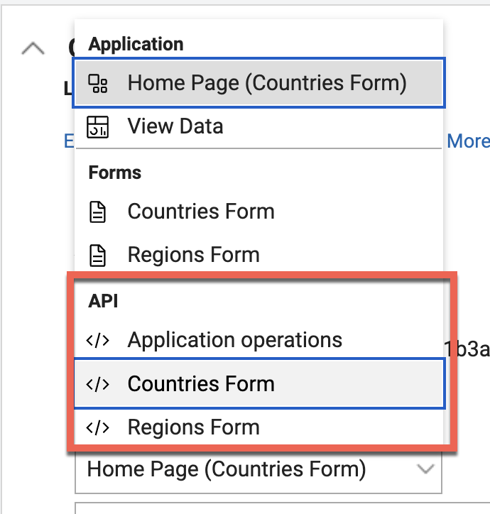 And you see the API entries for each form. Select any, e.g. Countries Form.
