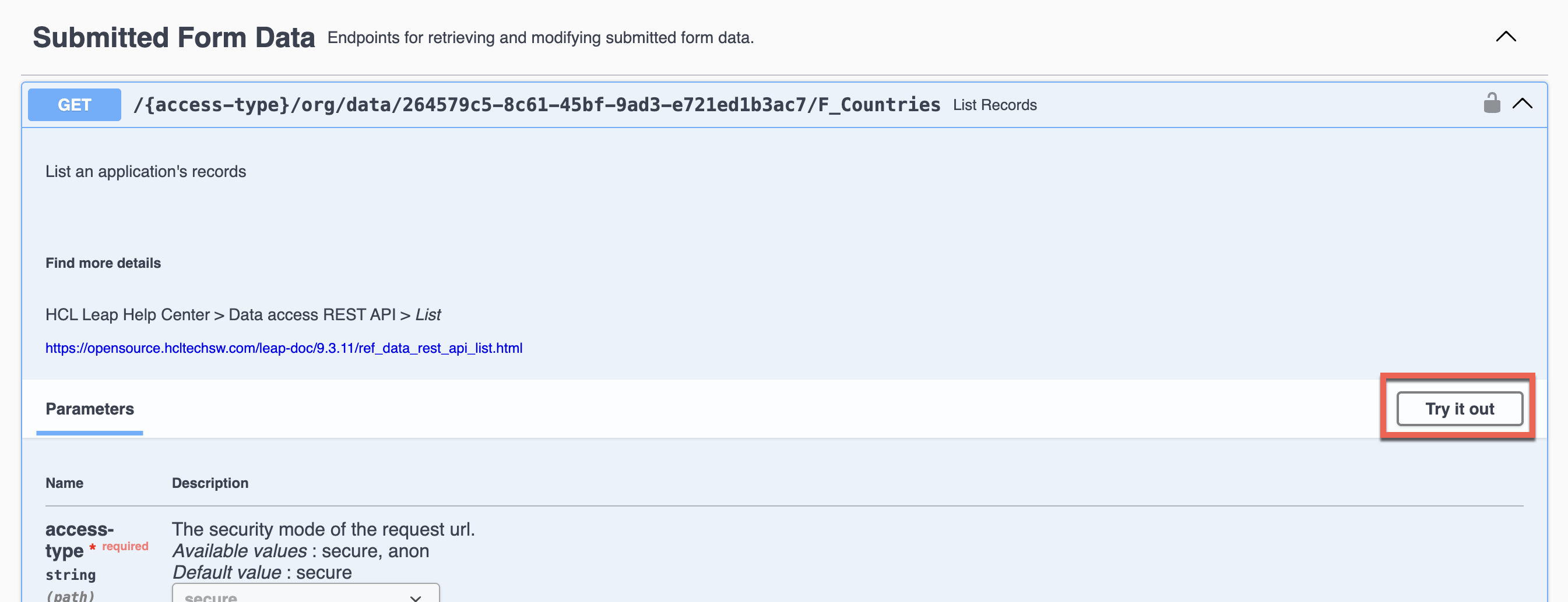 More details are in the Help Center: https://opensource.hcltechsw.com/leap-doc/9.3.11/ref_swagger_ui.html.