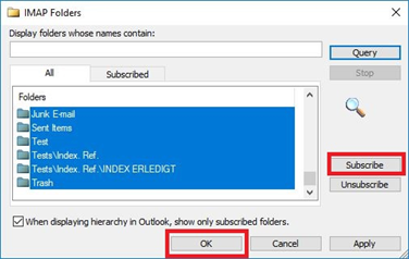 Also, click on the subscription and select the sent folder otherwise outlook uses its own send folder to save sent emails.
