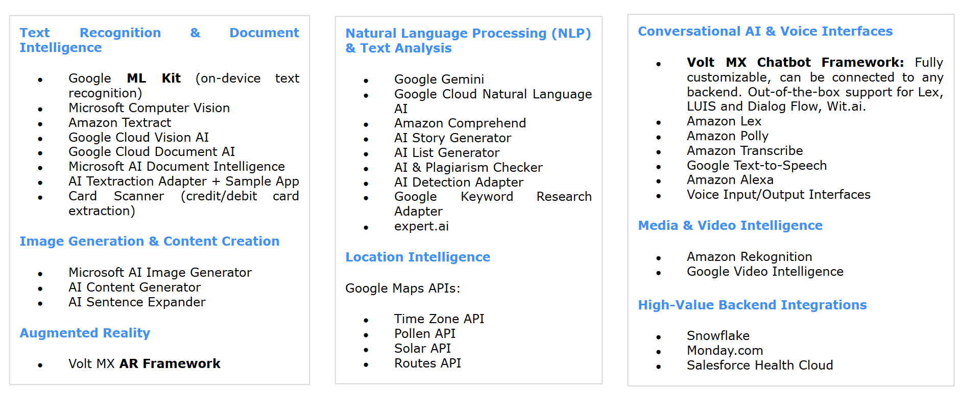 Whether you’re building a chatbot, analyzing user sentiment, or creating AR-enabled interfaces, Volt MX Marketplace has you covered.