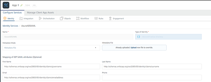 We have set up Azure AD SAML and the authentication works fine in an iris app.