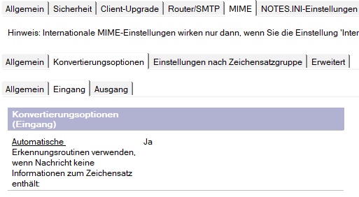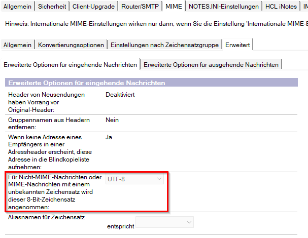 I have tried changing the Import-Export Character set in the Notes Client settings but this has not helped. What can I do so that German Umlaut characters are correctly displayed in Emails?