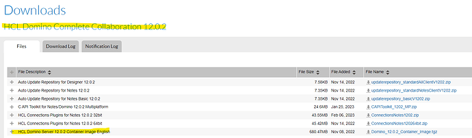 For the latest Domino release 12.0.2 you find the Domino container image in the HCL software download portal as below.