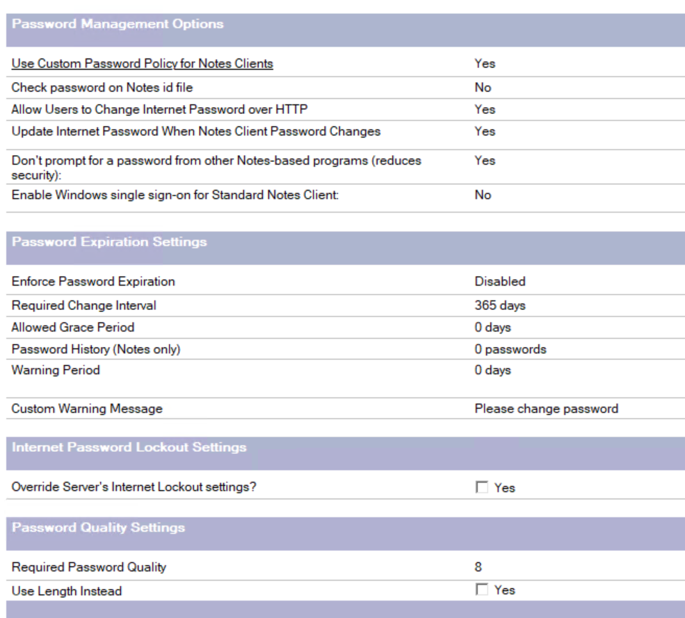I also noticed your latest reply mentioning that the password policy has been updated to use password length. In this case, ensure that the names.nsf is updated on the user’s home mail server and that the $Policies view is updated (automatic updates typically occur within 2 minutes by the update thread).